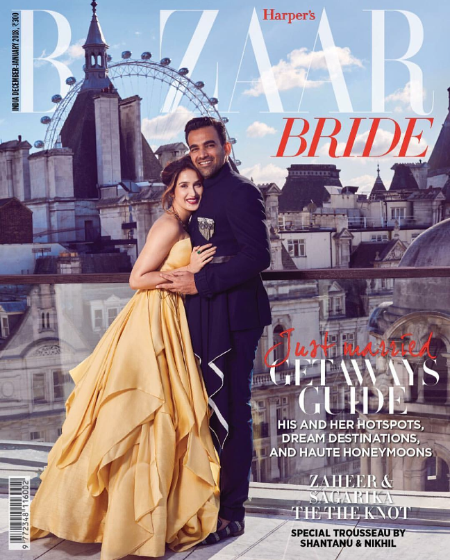 Newly weds Zaheer Khan and Sagarika Ghatge will be seen on the December-January 2018 cover of Harper’s Bazaar Bride. They both look super charming on this cover! What say?