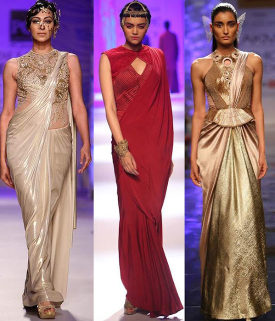 Now days more and more girls are opting for sari gowns for special occasions in their life i.e wedding, wedding receptions and other wedding functions which looks quite stylish and innovative in terms of fashion and wedding wardrobe ideas. In short these sari gowns are a great blend of Indian and western fashion.