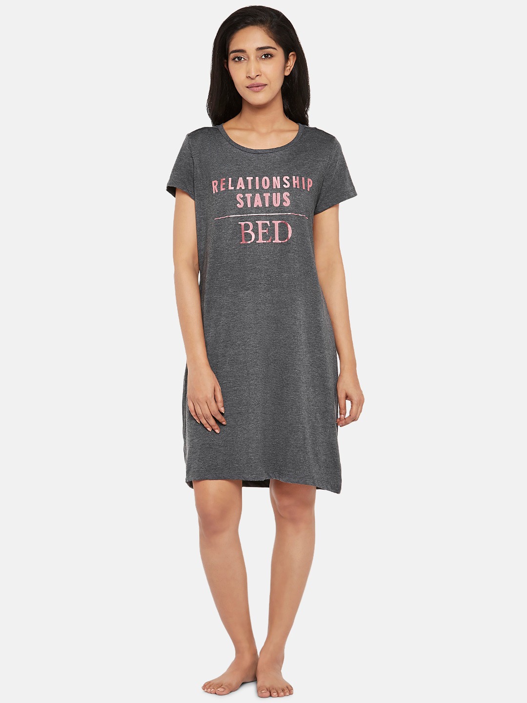 This grey short nightdress is great for teenagers. Made of cotton, it is high on comfort. The text is so cool and humorous.