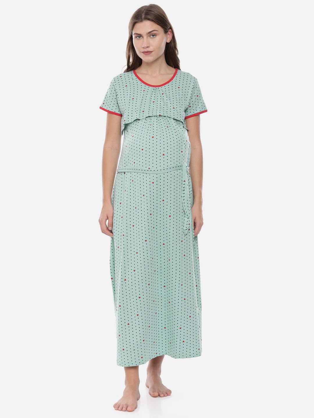 - GOLDSTROMS – Women Sea Green & Red Printed Maternity Nightdress