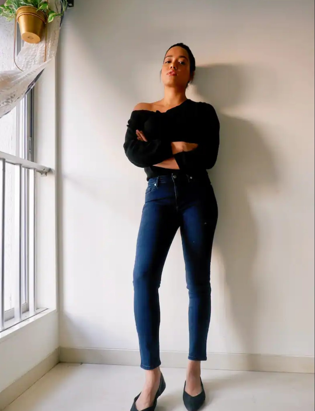 Debasree Banerjee had been looking to update her wardrobe. She wanted to find something in vogue and suited her style. Hence she came up with this vogue worth yet basic look. Pair the Rigo Solid Fitted Top with MANGO Skinny Fit Sustainable Jeans. Urban ethnic is also a great styling idea that you can follow. For instance, get your favourite denim and long slit kurta that you can pair with boho jewellery. Picture it in your mind and see how bold you can look in the attire.