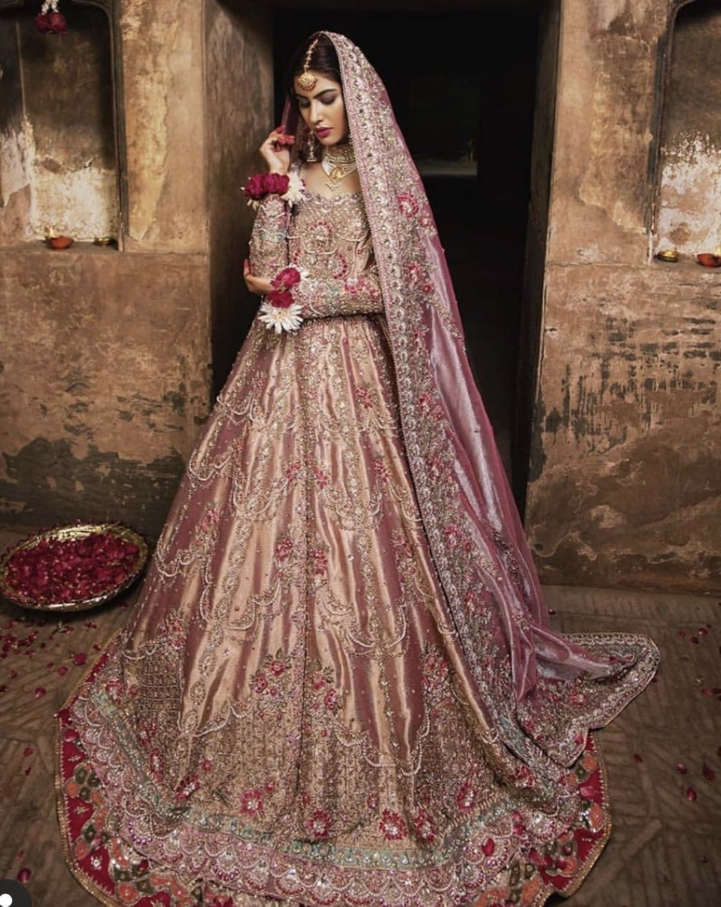 One must be looking for a heavy embroidered outfit as a bridal dress in Pakistan and India with subtle colours that will get the attention of all the wedding guests. People may want a dress that is beautiful and elegant, but not too heavy or too light. Women like to wear light colours in their clothes, keeping in mind the latest trends, particularly peach colours in their clothing.