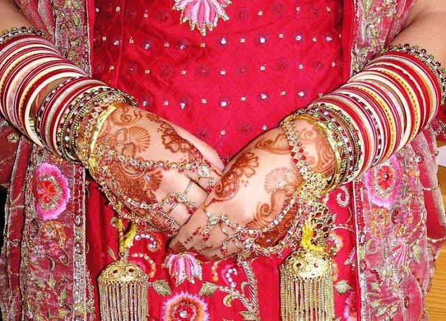 Being an Indian bride, one cannot ignore the bangles on her wedding day. These red, green and golden bangles add to the beauty of bride on her wedding. That filled up hand with mehendi and lots of bangles is a symbol of a bride in India. Isn’t it?